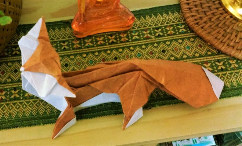 I’ve also included seasonally-appropriate photos of a squirrel and a fox I made earlier this year. The squirrel is about 6 cm in height. I’ll share more of my itsy-bitsy origami, as well as a few of my all-time favorite paper crafts (including a mosaic), in a future post.