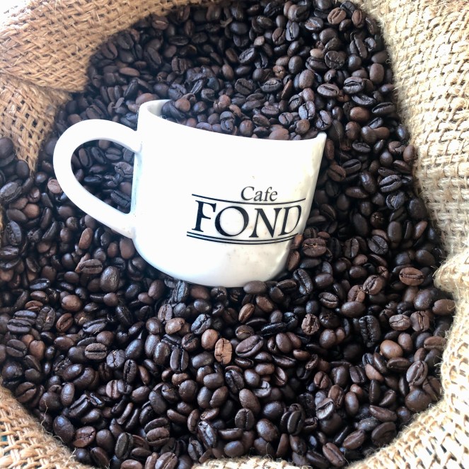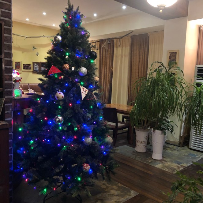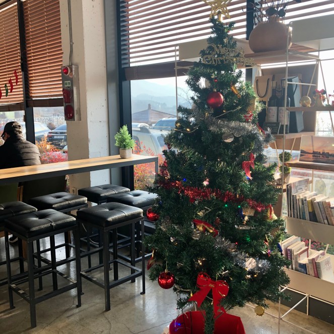 Cafe Fond is also decorated for Christmas. I can get my big-tree and Christmas-music fixes at these cafes.