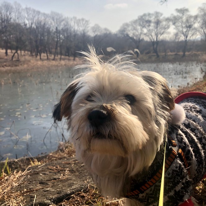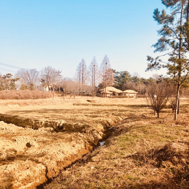Today was a tolerable day weather-wise, by Korean January standards – cold, but not too much wind – so I took my dog here for an extra long walk. The high temperature was about 8 degrees Celsius, or 40 Fahrenheit.