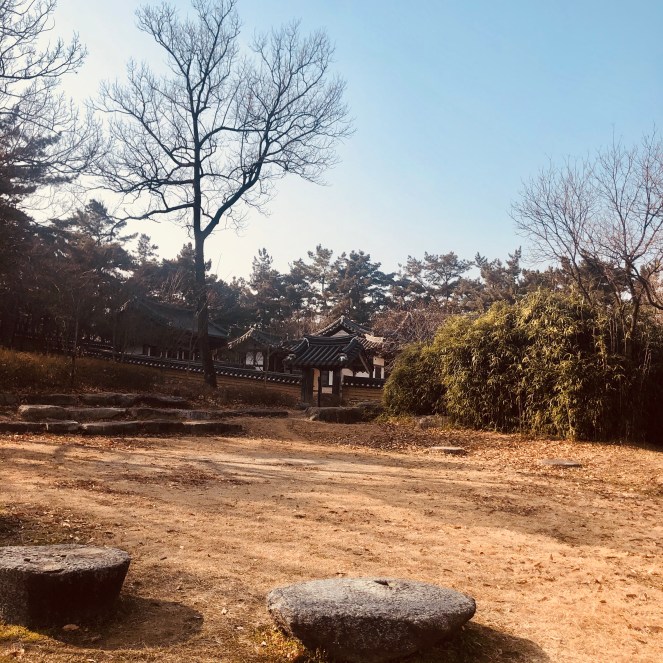 Just a few minutes’ walk from my home, at the edge of the Yeungnam University campus, is a charming folk village that is a favorite spot for field trips, early-morning promenades, and bird-watching. The folk village is actually a complex of relocated historic buildings. In 1975, the first of its buildings was installed – a private Confucian school, Gugye Seowon 구계서원, originally built in 1696, during the Joseon dynasty.