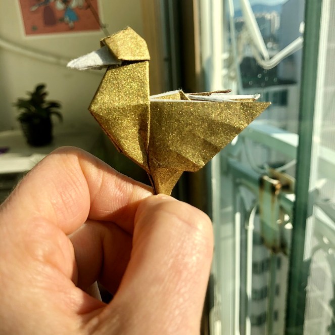 Yesterday evening I pulled out some wonderful foil papers in anticipation of my Tokyo trip, and decided to try a new duck figure by Jo Nakashima.