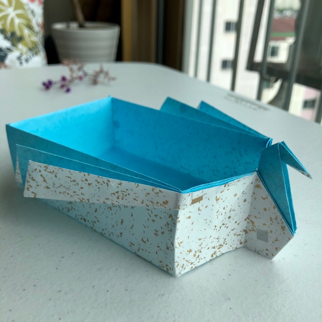 Just want to share with you an elegant little envelope / box design that I made from Kazuo Kobayashi’s book of crane folding. You can see other designs I folded from his book, here, and you can see Mr. Kobayashi here during my trip to Tokyo in February.