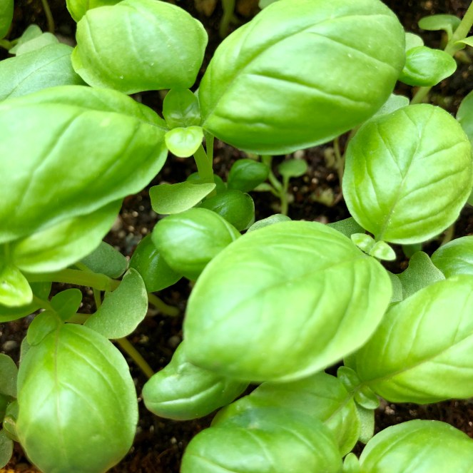 In the corner of the above photo is a glimpse of proto-leaves of my cilantro (also, below). My British friends will call it coriander. Either way, it’s a controversial herb; I know some people who think it tastes like soap. I happen to love it, and use it copiously in Mexican and Thai cooking, when I can get my hands on it.
