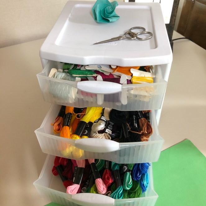 Among the craft goodies inside were a few dozen hanks of Loops and Threads embroidery floss, and an antique pair of embroidery scissors by a German company called F. Koeller. They have marvelous little fish at the handles, and are still super sharp.