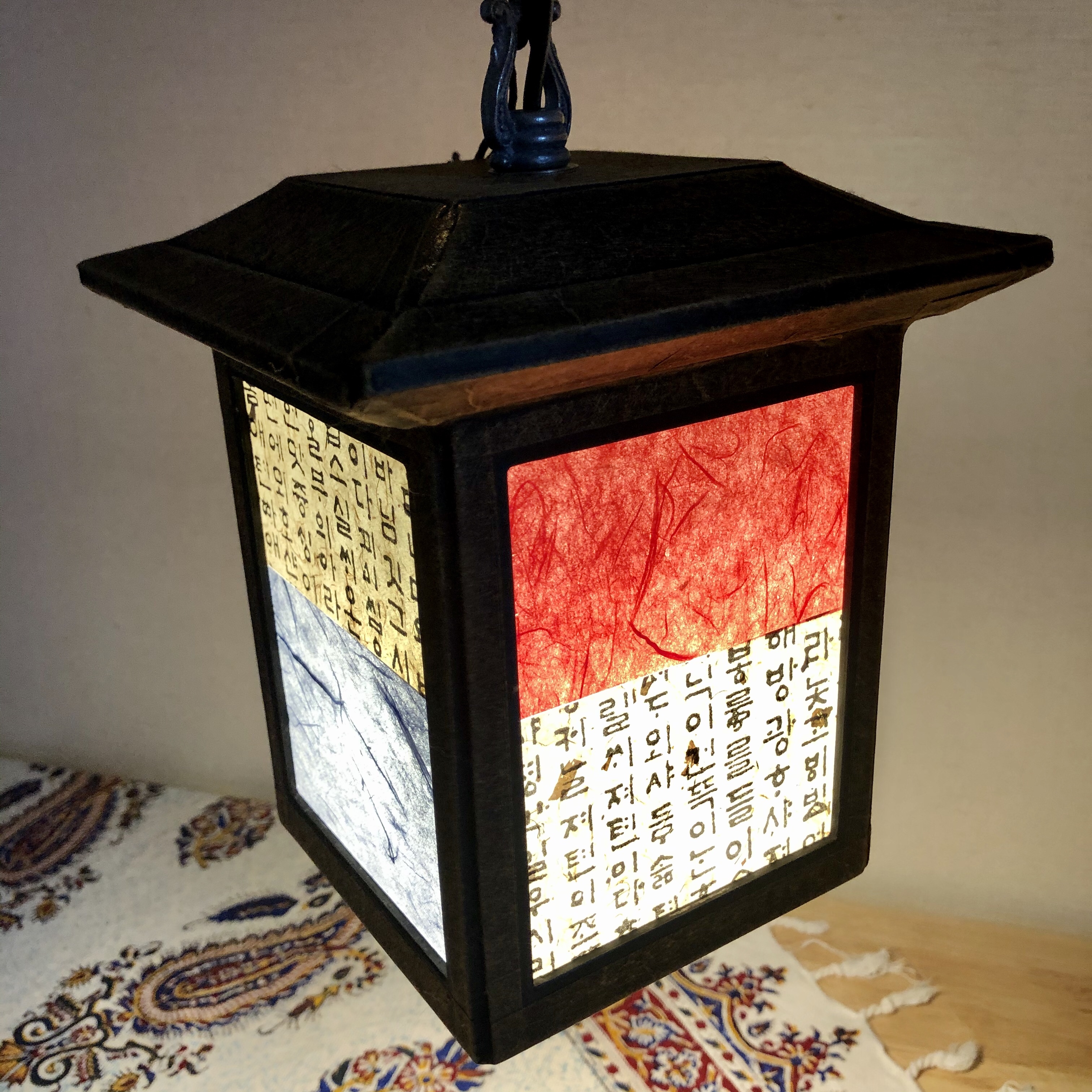 While in Seoul, I bought a Korean pendant lantern, made of hanji (a traditional mulberry paper, see photo below). I plan to hide the cord with macrame. I promise to post how I do it – I found an HGTV video that I think will help me. It will be perfect hanging above my new dining table.