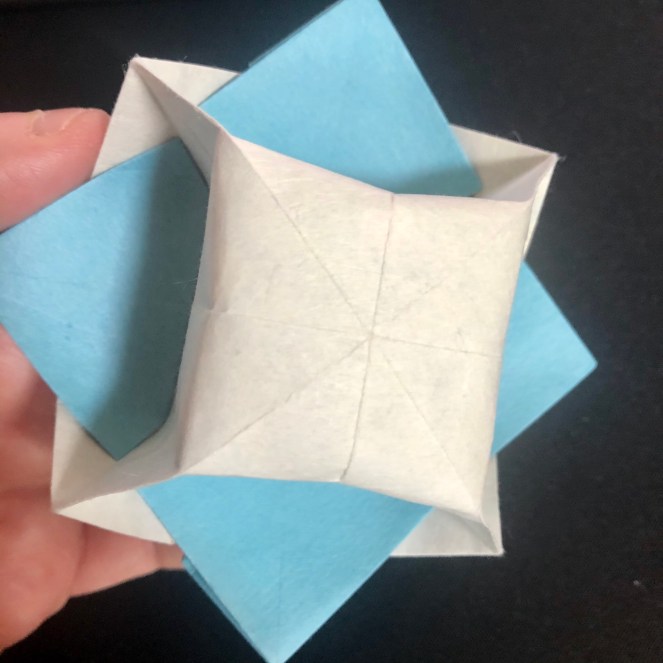 Meanwhile, I’m staying dry and occupied with paper and yarn. I pulled out some of my Tokyo origami papers yesterday to make a beautiful little Chinese-style box, which is a ori/kirigami hybrid. There is a little cutting and a lot of folding on this one! I really enjoyed making this pattern from Paper Kawaii, a favorite website for simple origami patterns and ideas.