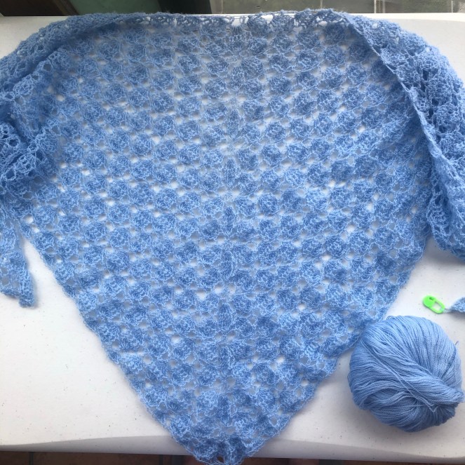 Apart from paper folding, I’m working on many yarn projects, including three shawl patterns with laceweight and 2-ply yarn. I’m at slightly different places now with all of them.