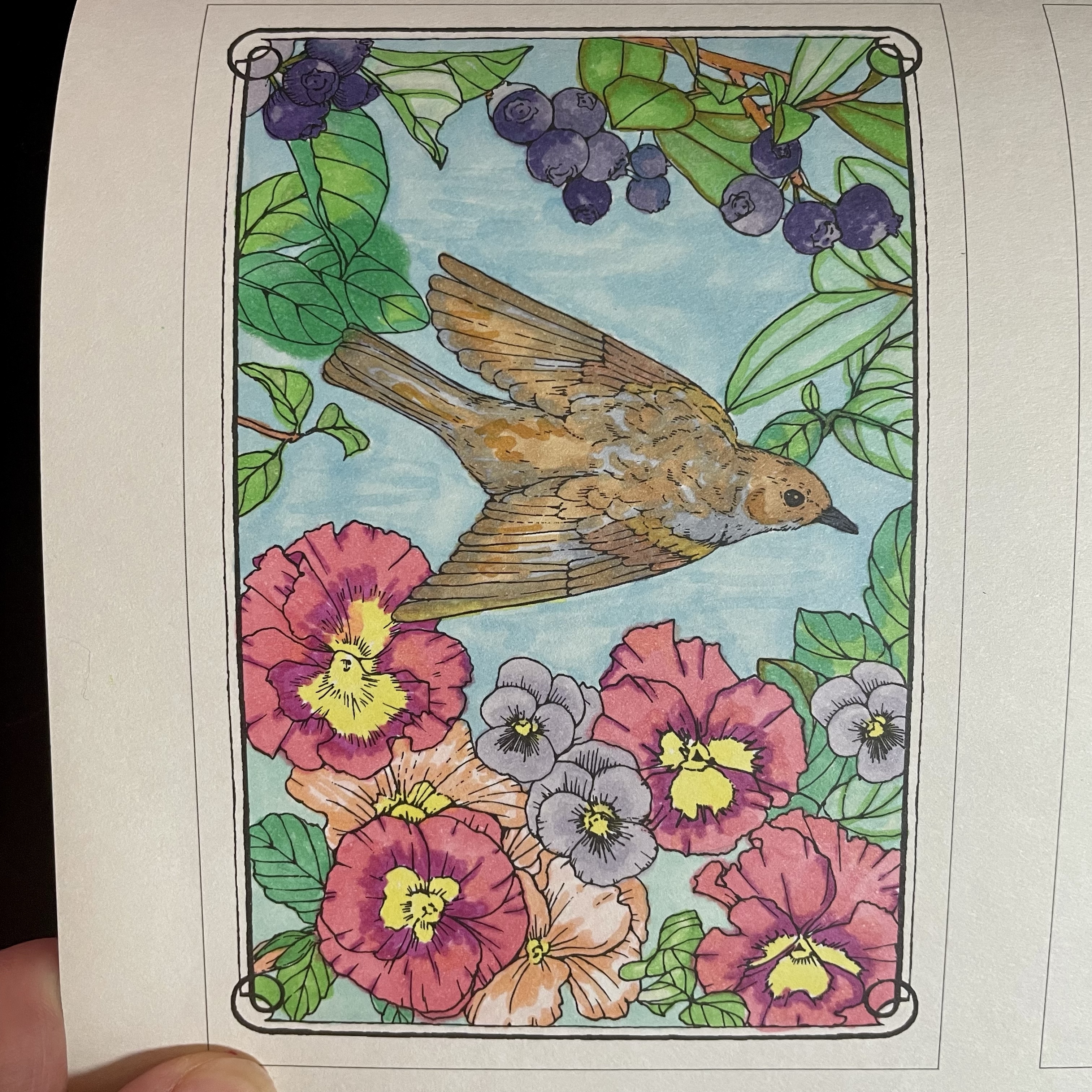 A few weeks ago, I posted about three Japanese coloring books by Kanoko Egusa I received in the mail. I hauled out my Copic brush markers yesterday and finally tackled one of the smaller images that has no art on the backside (the markers bleed through paper). I will definitely use colored pencils for most of the rest of these beautiful images. It has been ages since I’ve spent time coloring, and it’s great therapy.