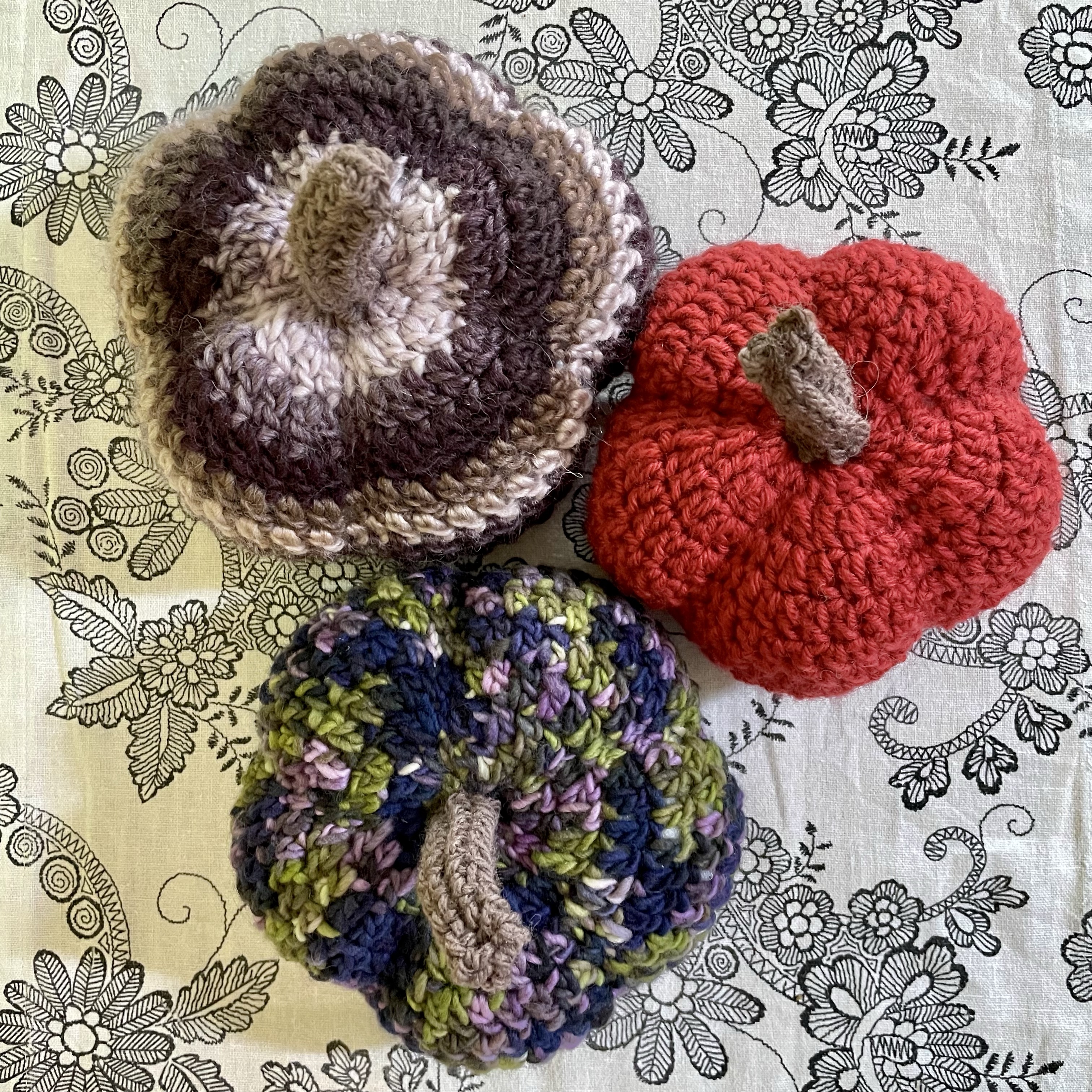 The pumpkins are lovely! It is great that you could use up your scraps of yarn. Thanks for the link to the pattern.