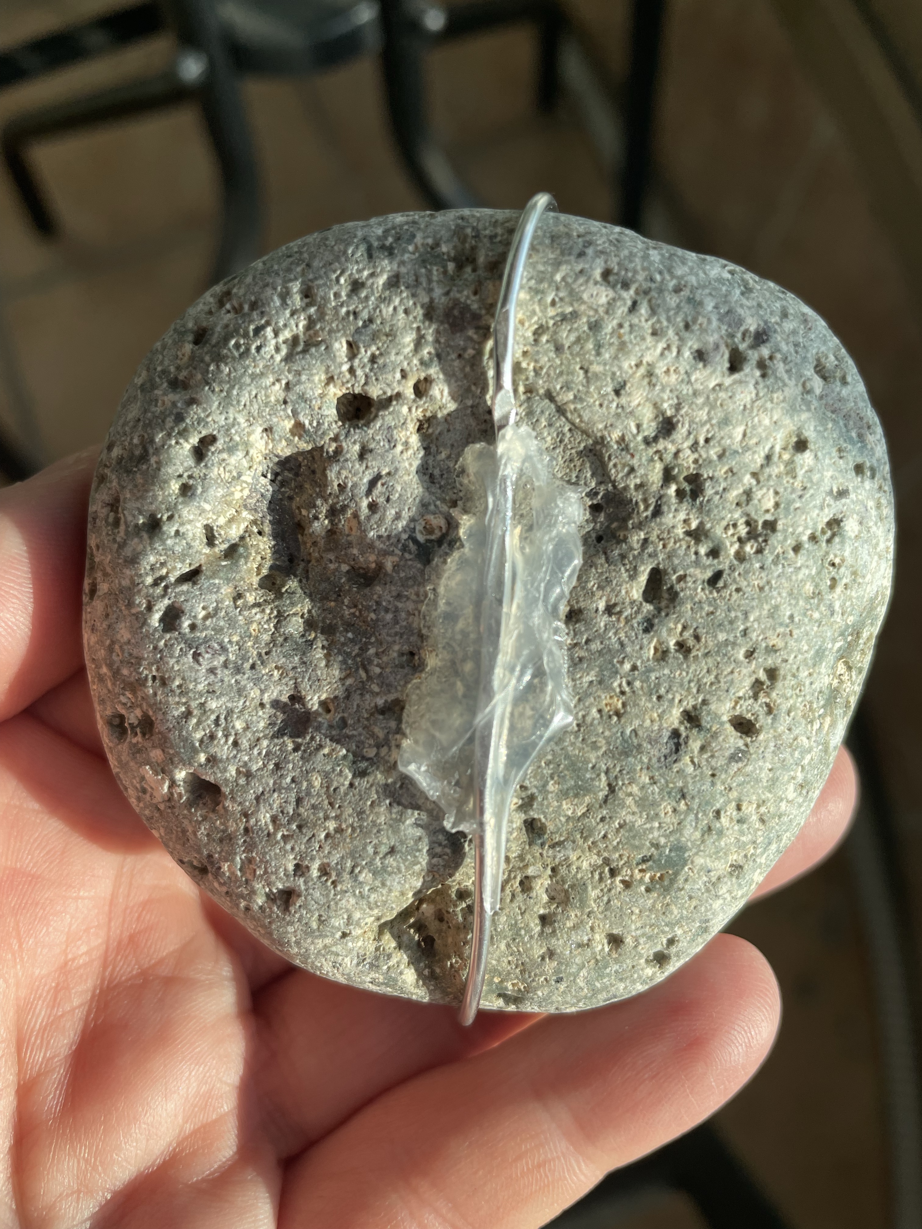 If you’re really handy, you can paint or decorate the rock beforehand. I added a little dragon’s blood stone accent – a nugget of jasper that I found on my last trip to Agate Beach in Trinidad, California.