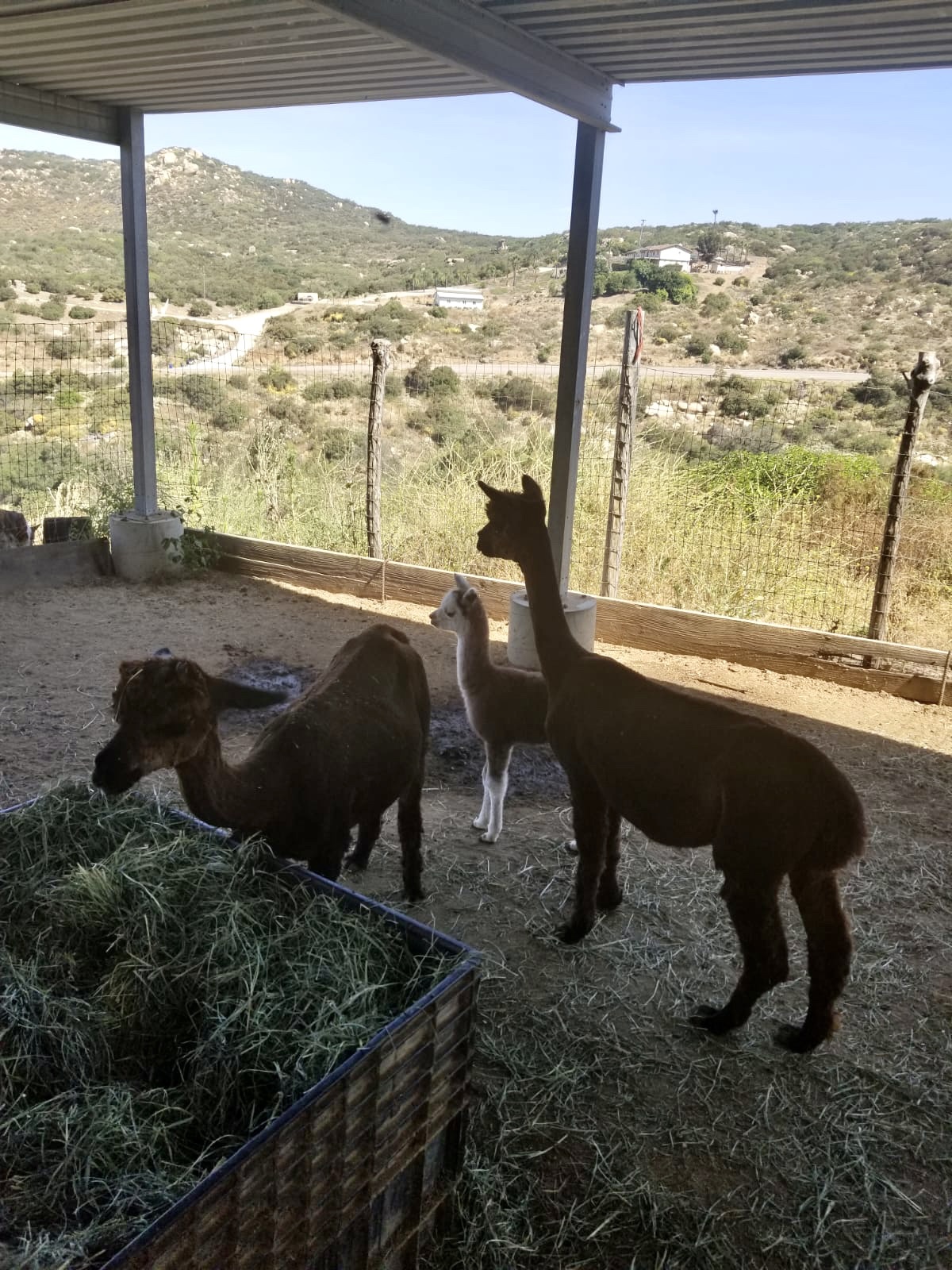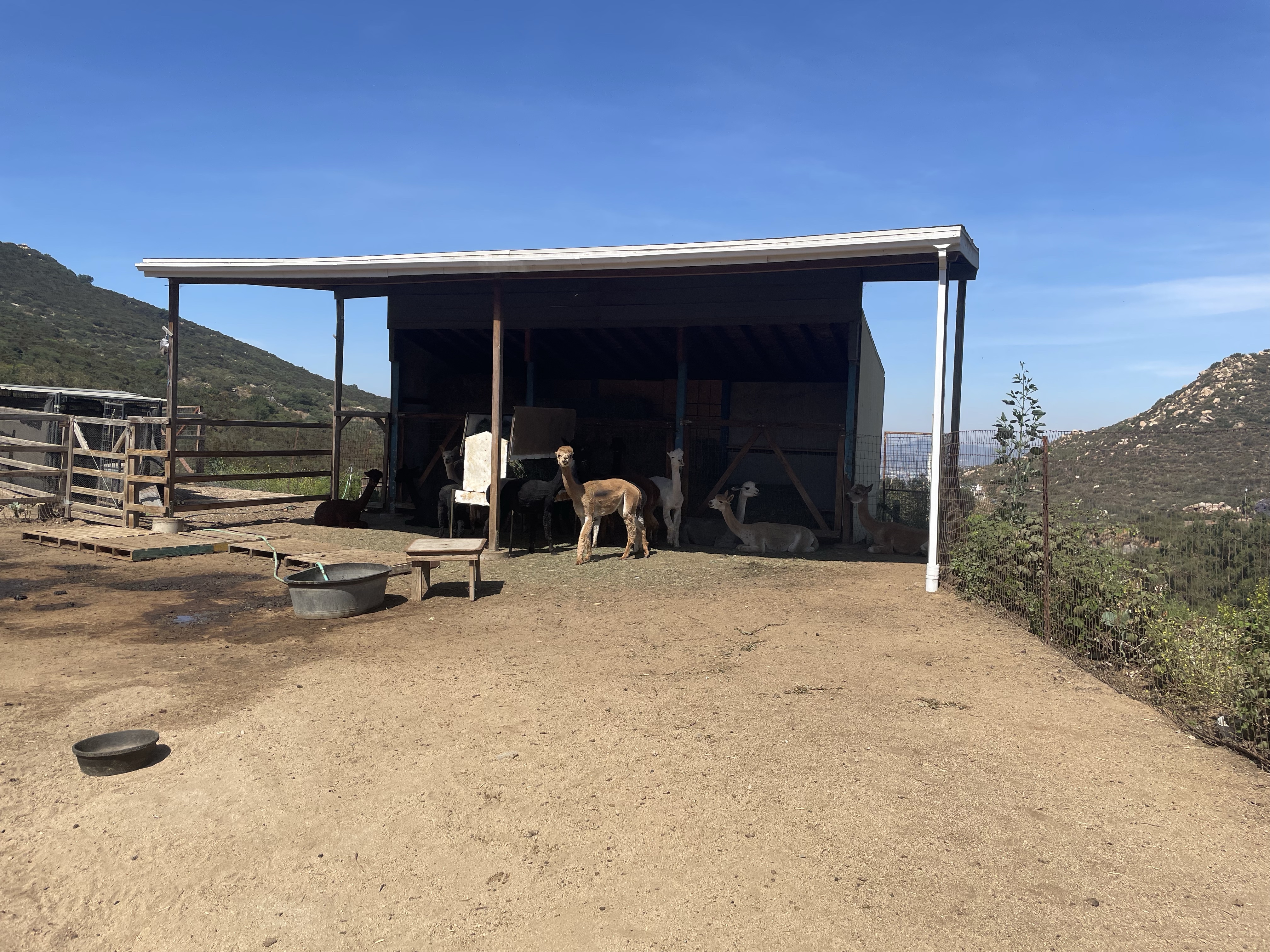 On Monday, Mom and I visited Barbara Davies at A Simpler Time, her family’s wonderful alpaca ranch and fiber mill in the hills above Harbison Canyon in San Diego. Her homestead was established 23 years ago, but the main house burned down in the devastating Cedar Fire of 2003 (click for map). Long-time locals remember the massive two-month long blaze that was to be one of the worst in California’s history.
