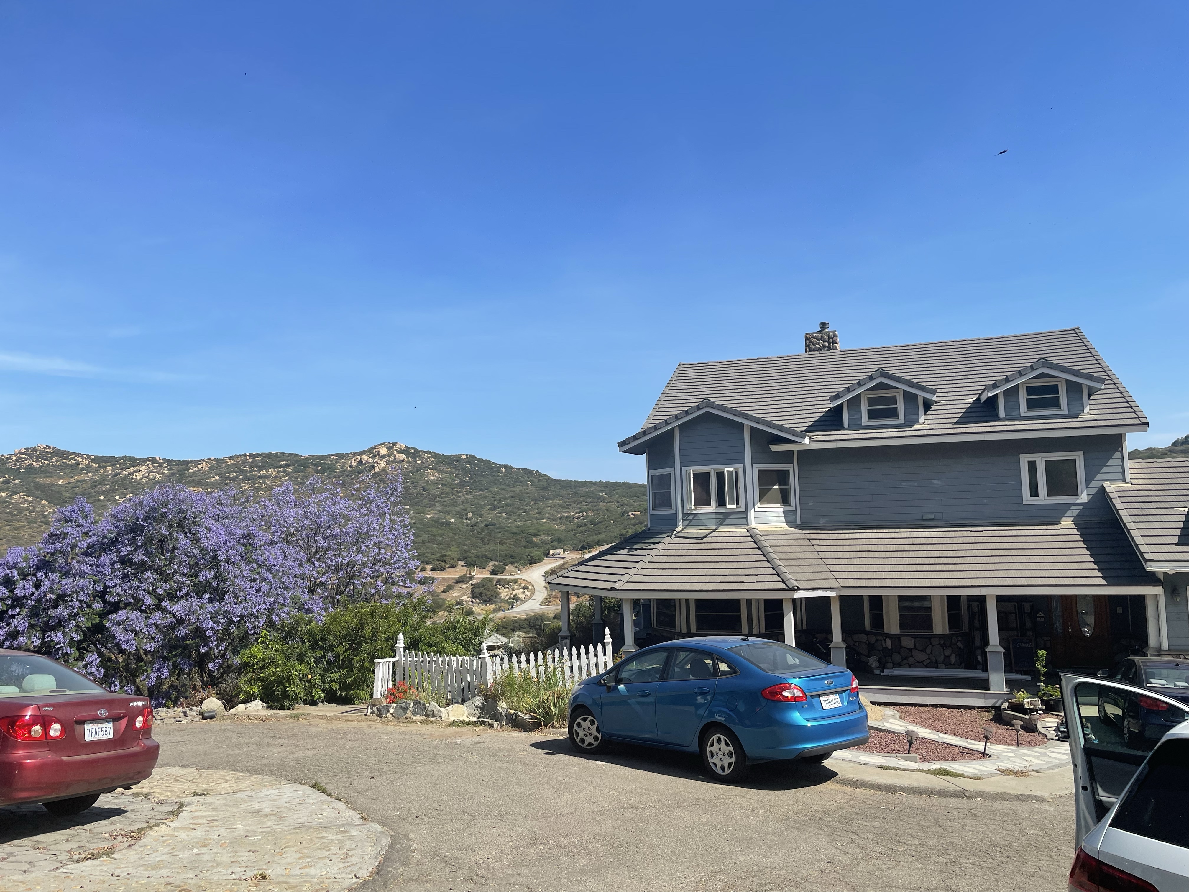 Our journey to the farm was a fun trip into a secret niche of San Diego’s ever-shrinking backcountry. We arrived at a lovely blue and white home at the crest of a hill, surrounded by jacaranda, fruit trees, and native plants. Although in the valley, the day was a typical July scorcher, at the top, the breeze was pleasantly fragrant and mild, and the atmosphere was peaceful.