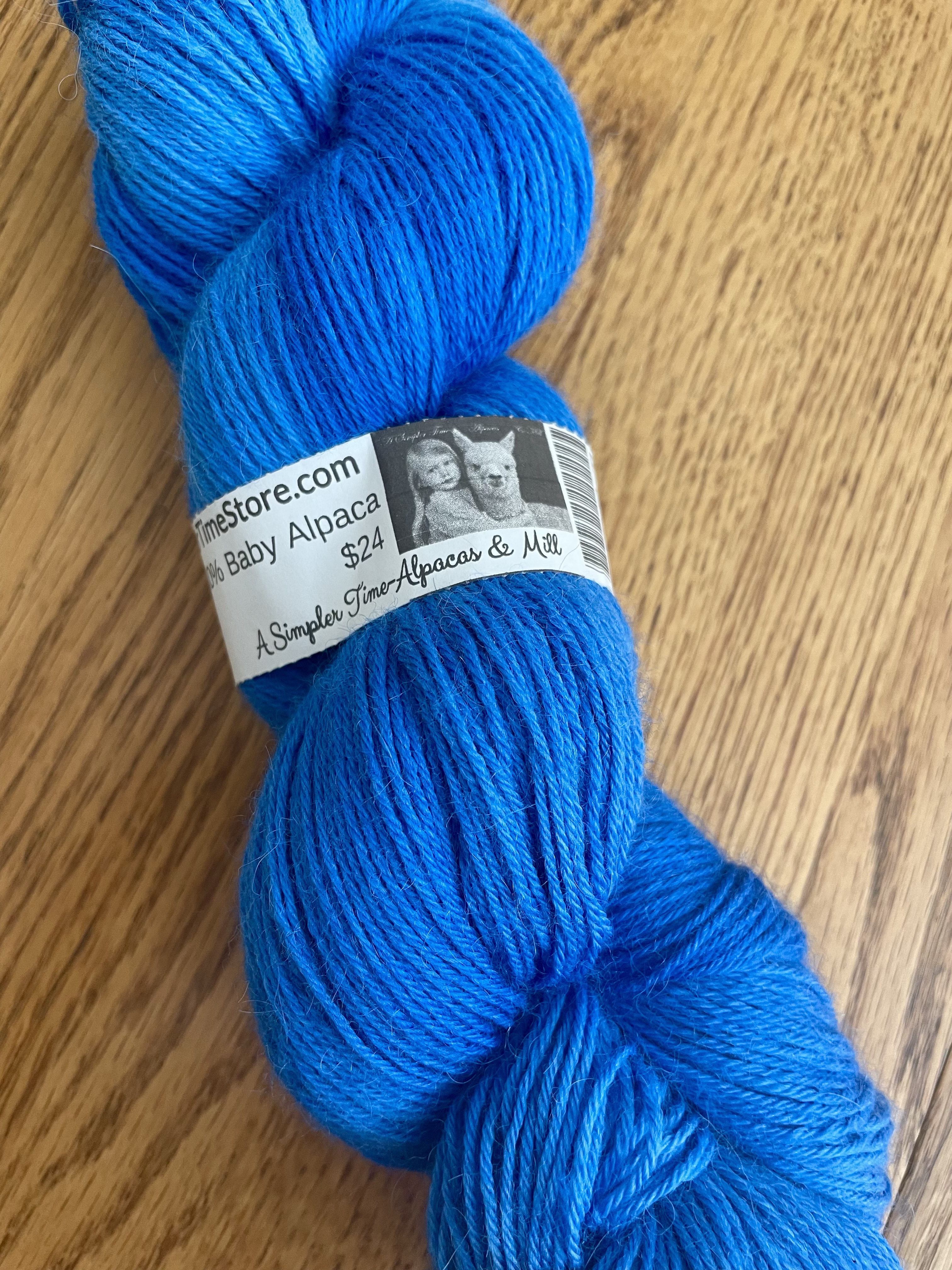 Check out a photo above of a fingering-weight yarn I picked up a the shop, dyed a gorgeous sapphire hue. Barbara sells alpaca yarn in natural (undyed) colors, and colors that use Jacquard dyes.