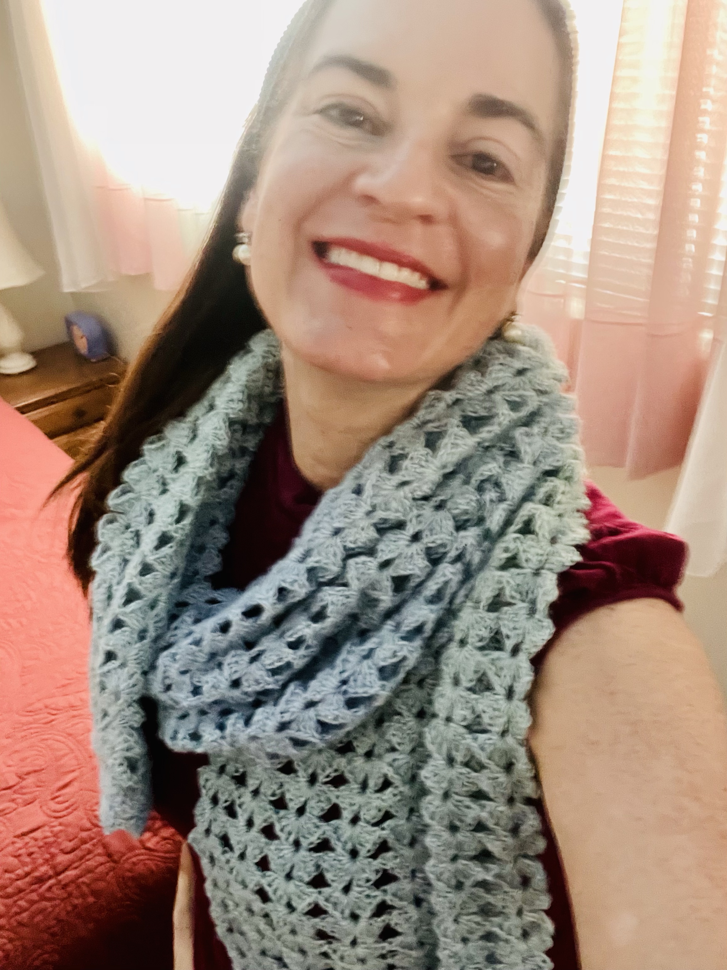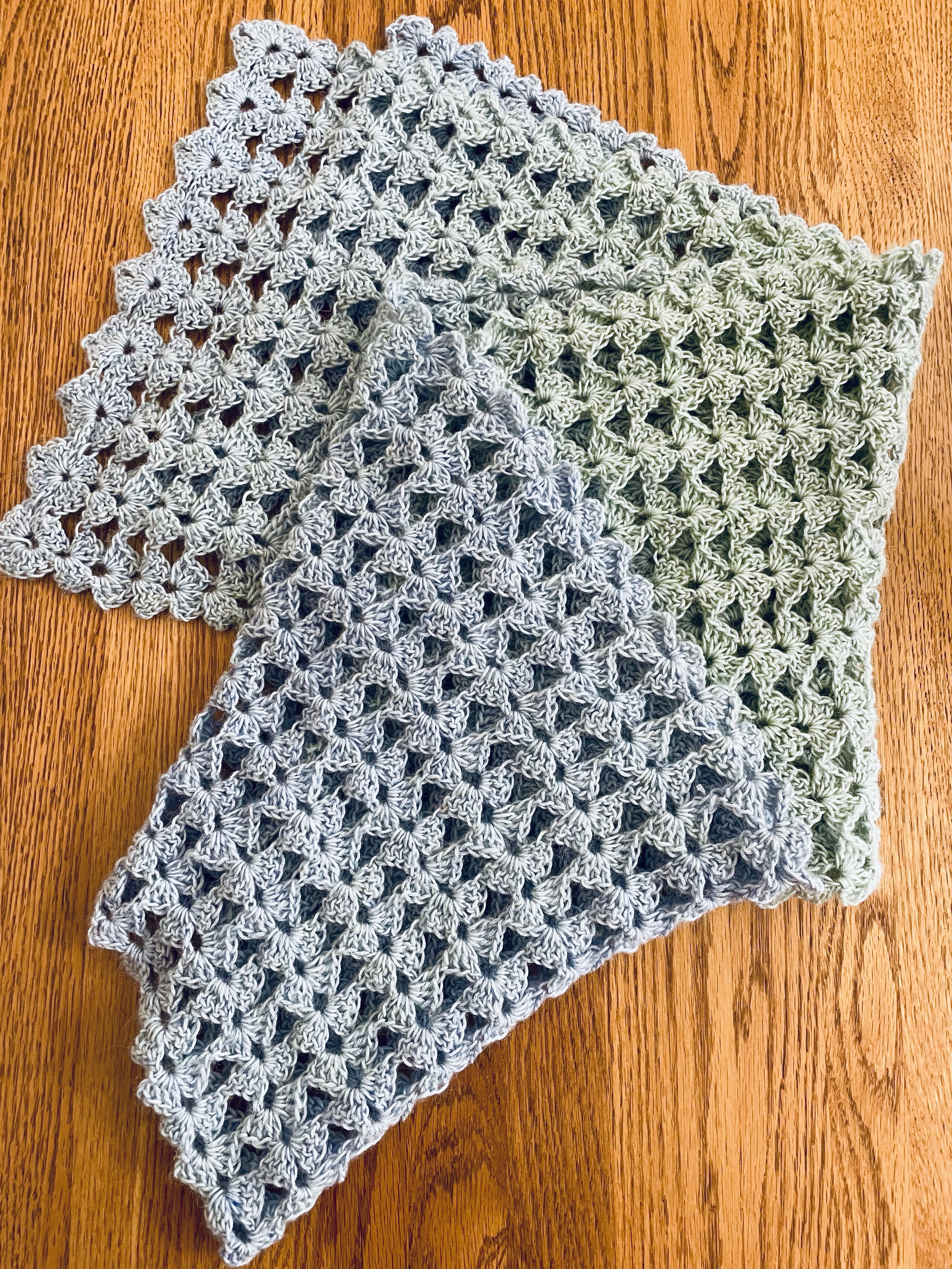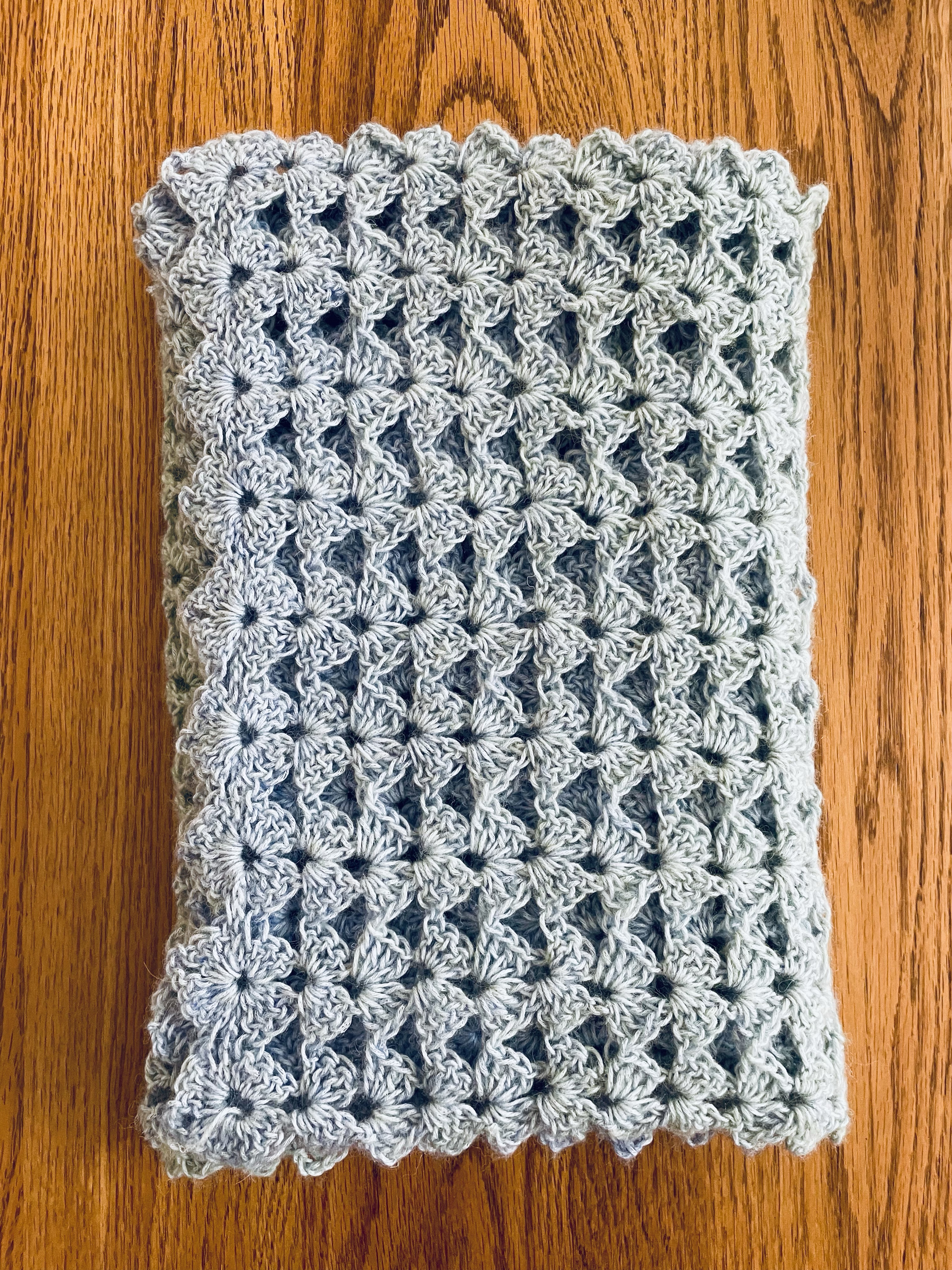 In other news, I’ve really accelerated my crafting now that the semester is behind me. I’m 80 percent done with two mandalas, and just this morning, I finished a beautiful scarf using Lana Grossa Ecopuno Dégradé yarn in colorway 414, a soft blue-green mix. The fiber content is 72% Cotton/ 17% Merino Wool/ 11% Baby Alpaca, which makes it light-weight but toasty. It’ll be ready for fall when I get back to Korea.
