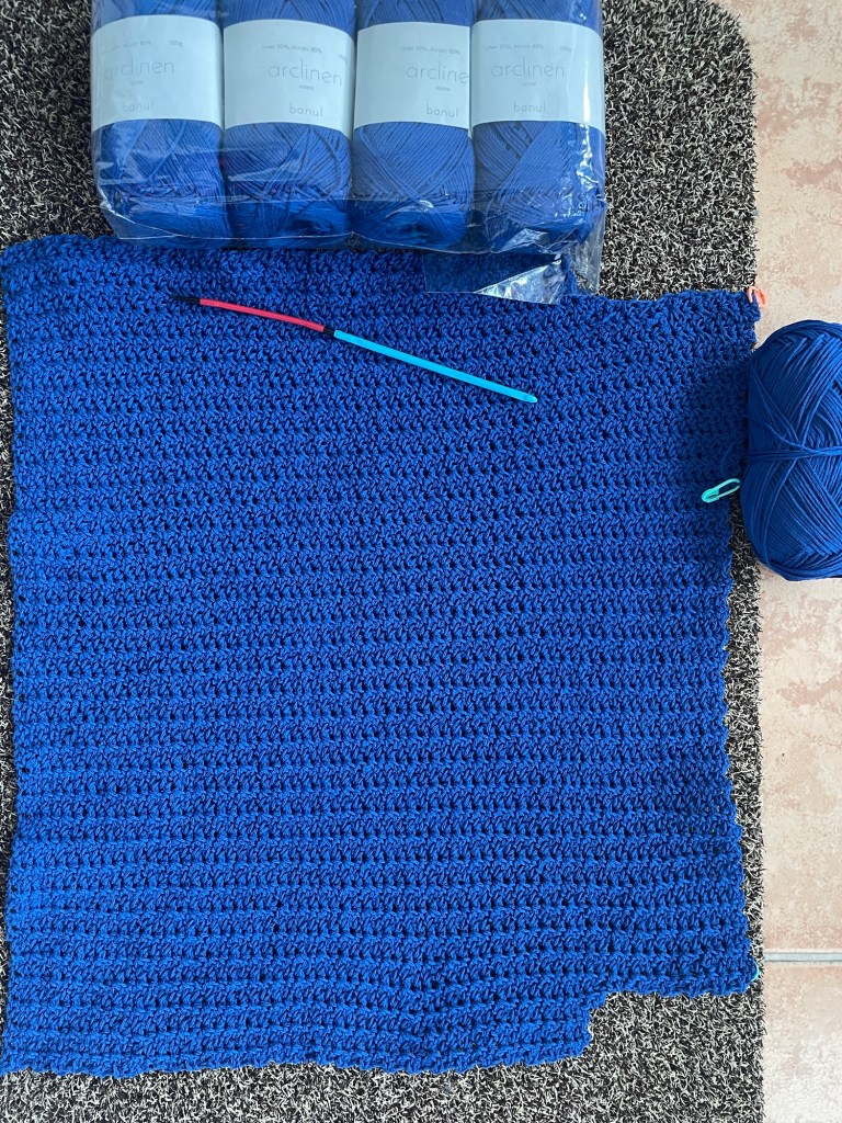 I have also made a bit of progress on a cardigan. A month ago, I bought some Korean-made Arclinen (20/linen, 80/acrylic) at end-of-season prices at Banul (a Korean yarn source). I love working with linen and linen blends. This cardigan is slow-moving, so it will likely take me the winter to crank it out!