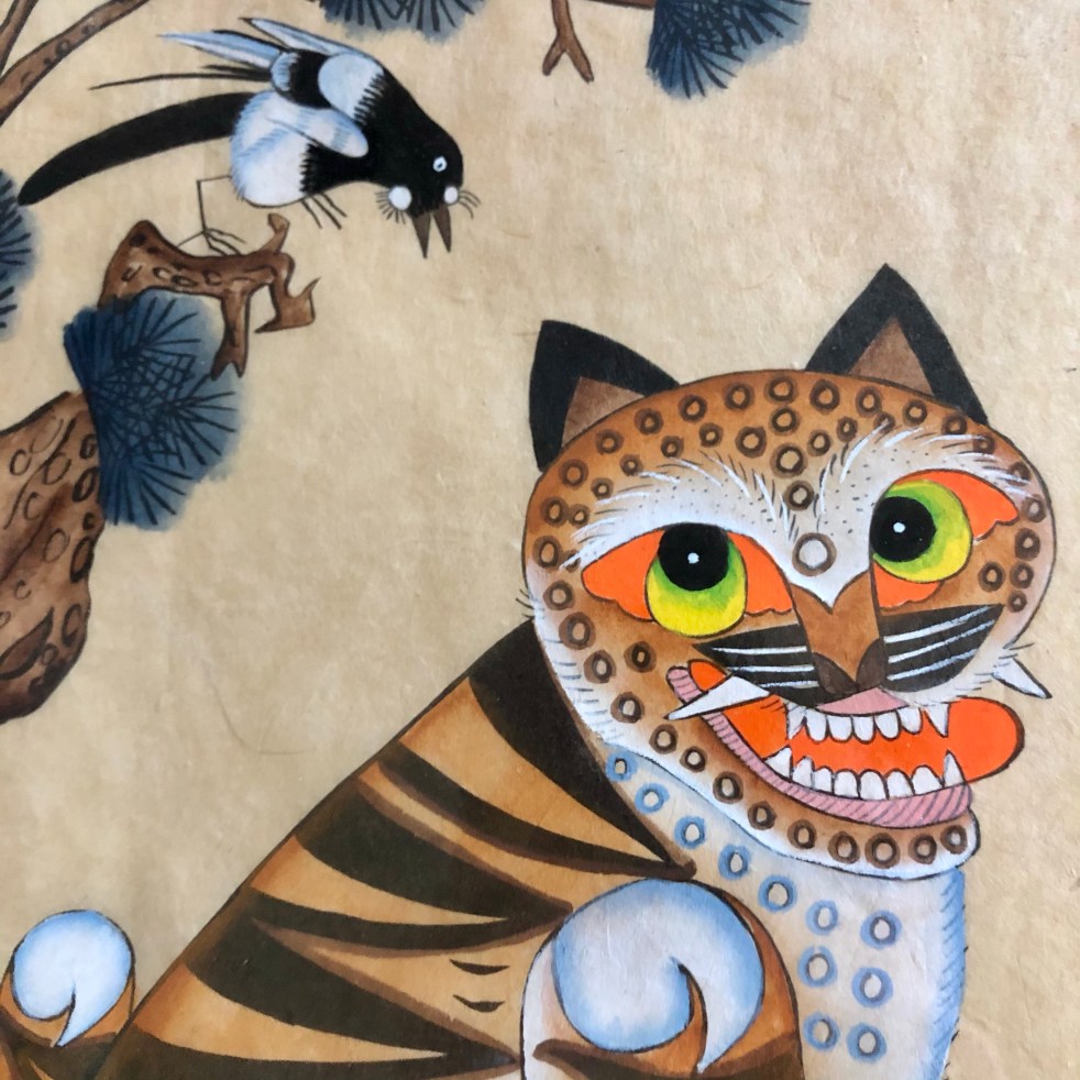 One of my favorite Korean handicrafts is Minhwa (민화), or Korean folk painting. I recently acquired a lovely reproduction of a well-known Minhwa theme, called Hojakdo (호작도), or a tiger, magpie, and pine tree scene. There are many versions of this triad, and this one makes me smile. Minhwa paintings have a charm and accessibility… Continue reading Traditional Korean painting “Minhwa” and WIP update
