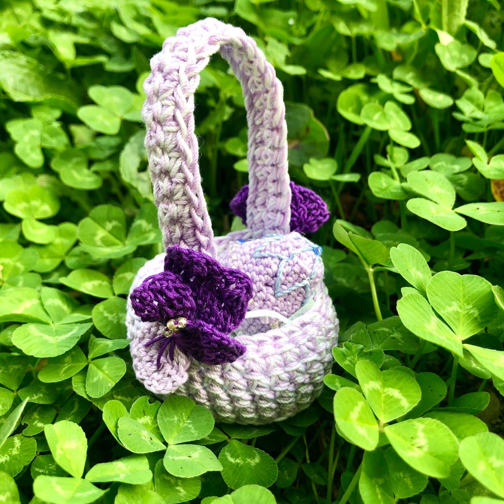 The violets from my last post are now at home on a tiny crocheted basket, complete with a crocheted mini beaded egg. I did this little ensemble quickly, and it's not without flaws, but the concept is promising. I might try another idea like this, and plan the details a lot more carefully. I used… Continue reading A place for the violets, and more Spring updates