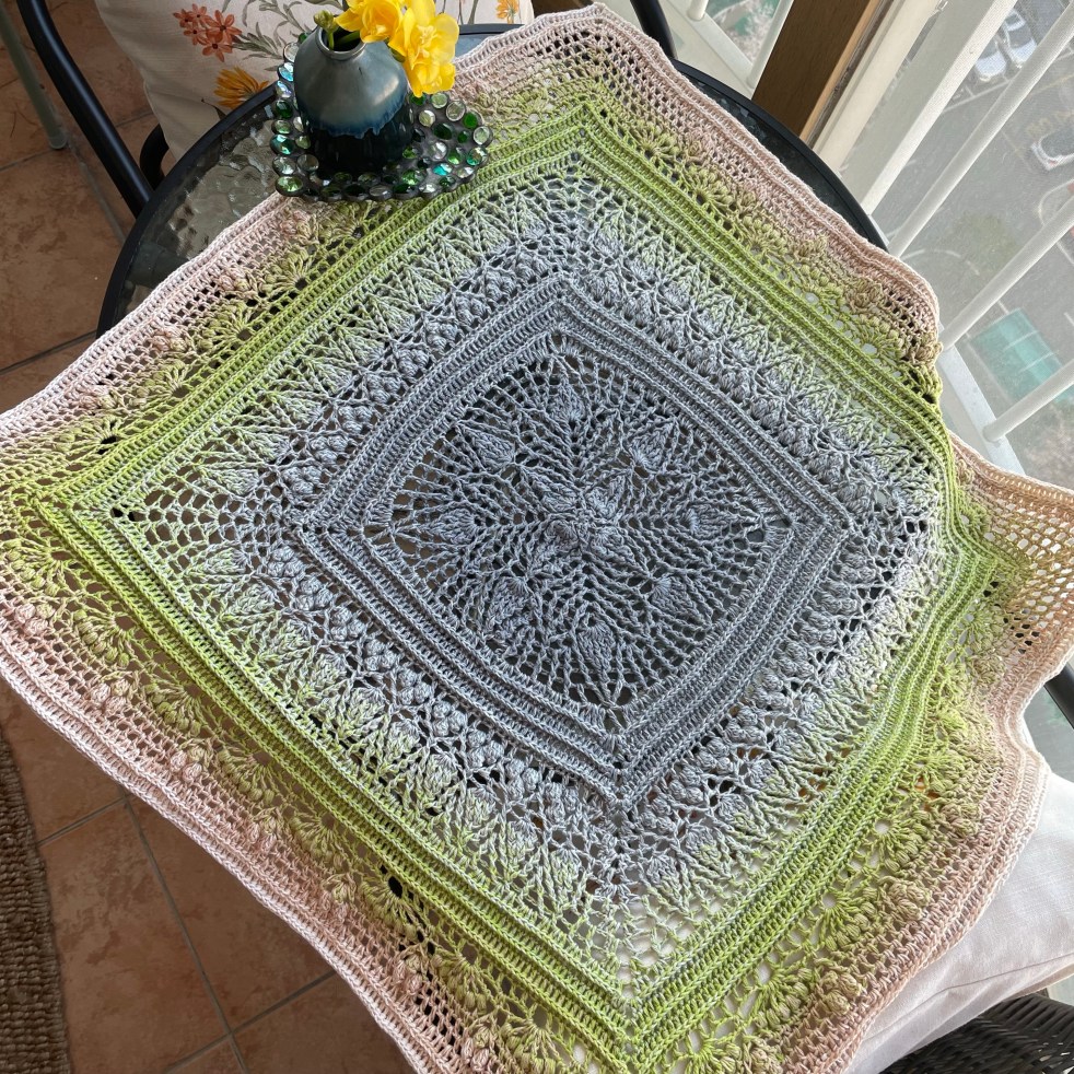 The "New Life" mandala is done, just in time for Spring. This is a lovely pattern by The Guy With the Hook, designed to use an entire 1000m gradient yarn cake. I made mine with YarnArt Flowers and a 3.00mm hook. It is just big enough to trim my kitchen table (below, you can see… Continue reading “New Life” crocheted mandala is finished
