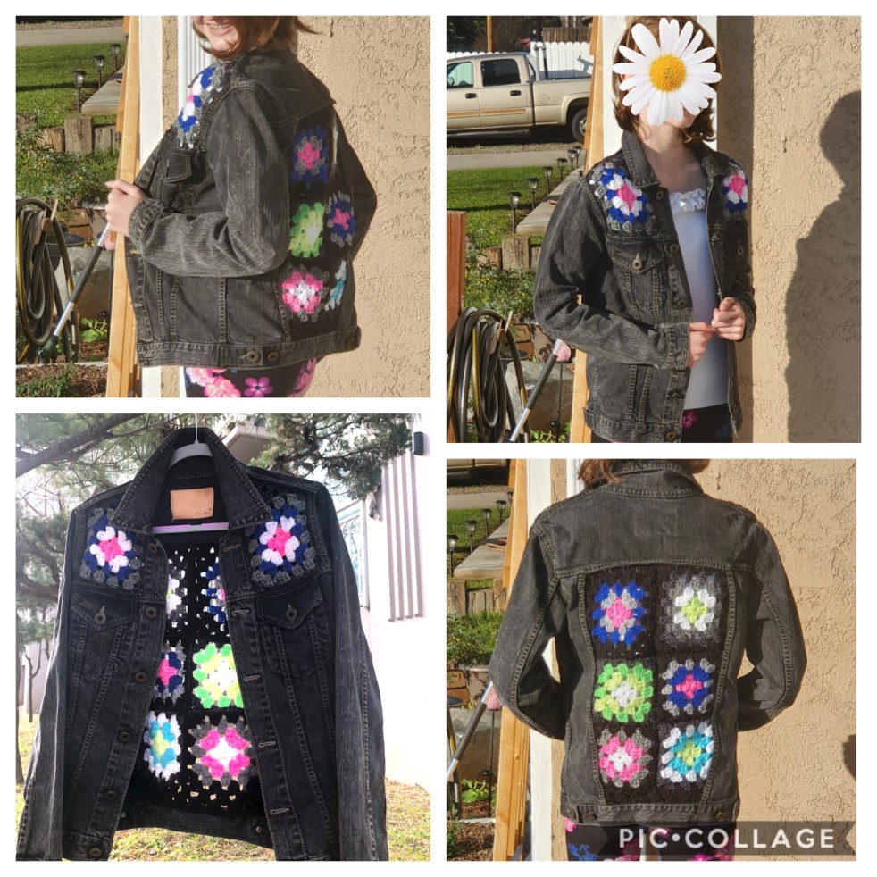 I promised last week to let you know what became of that second-hand denim jacket that I inset with granny squares. I can report that my lovely, oldest niece in California received it and loves it. PHOTOS: San Diego, California U.S.A. It's a pretty quirky item, but somehow my niece and I are on the… Continue reading Update: Thrifted jean jacket has been adopted ❤